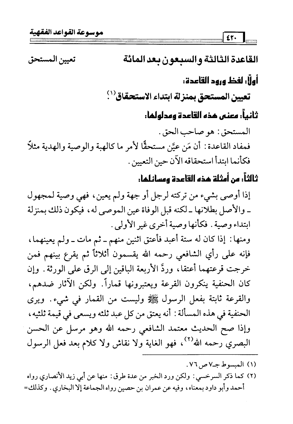 القاعدة الثالثة والسبعون بعد المائة [تعيين المستحق]