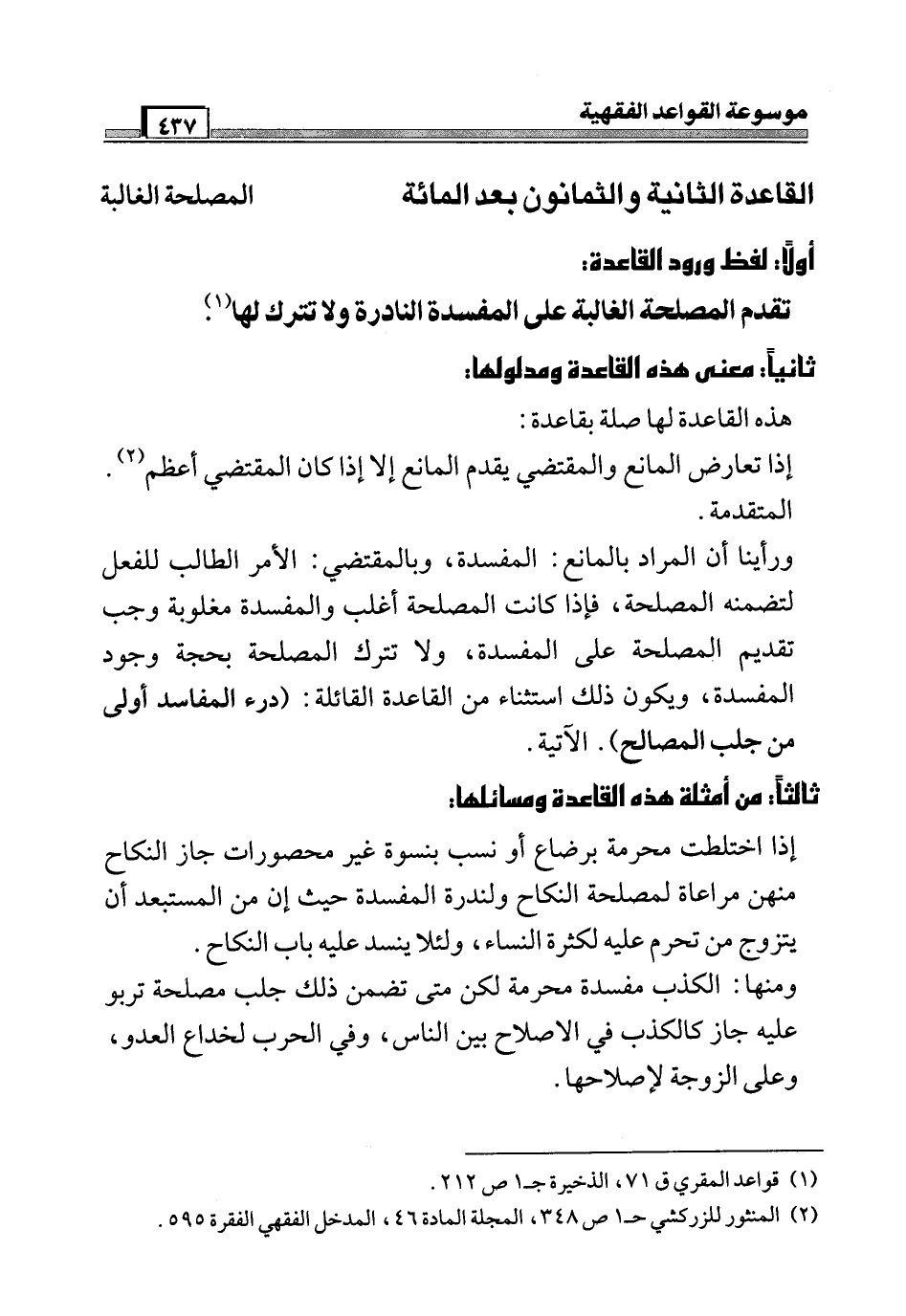 (¬2) المنثور للزركشي جـ 1 ص 348، المجلة المادة 46، المدخل الفقهي الفقرة 595.
