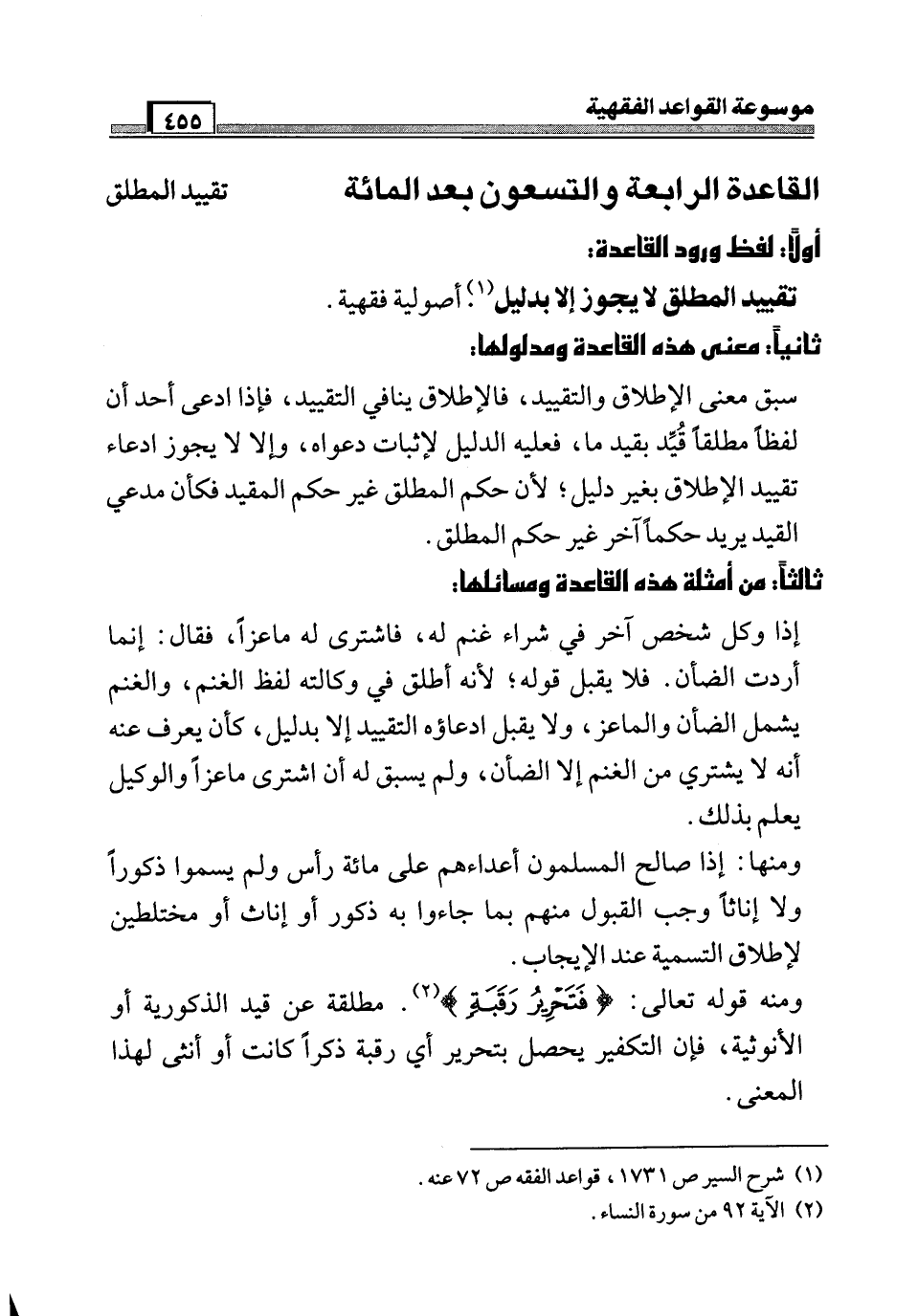 القاعدة الرابعة والتسعون بعد المائة [تقييد المطلق]