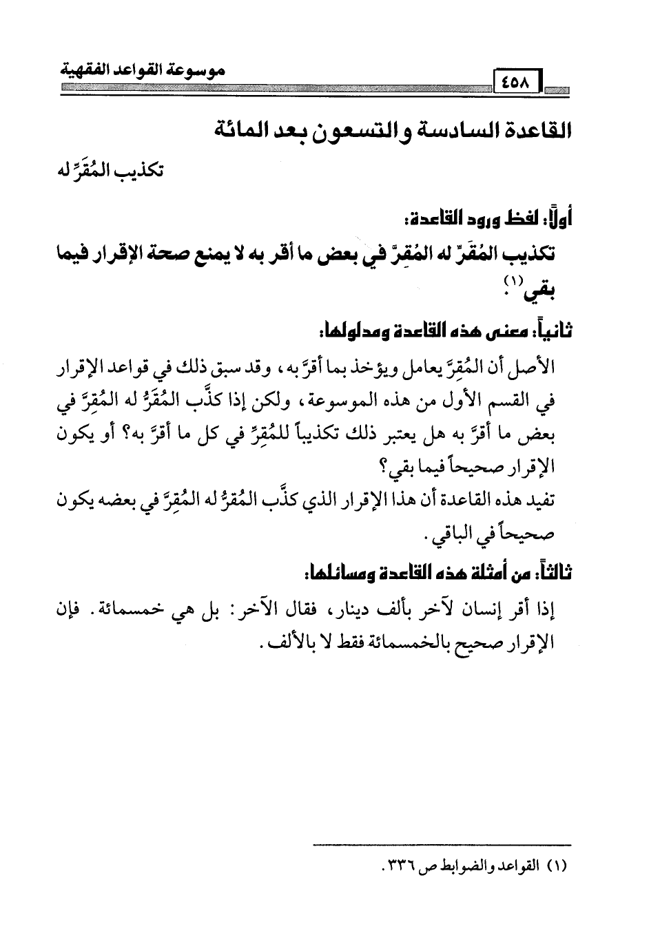 القاعدة السادسة والتسعون بعد المائة [تكذيب المُقَرِّ له]