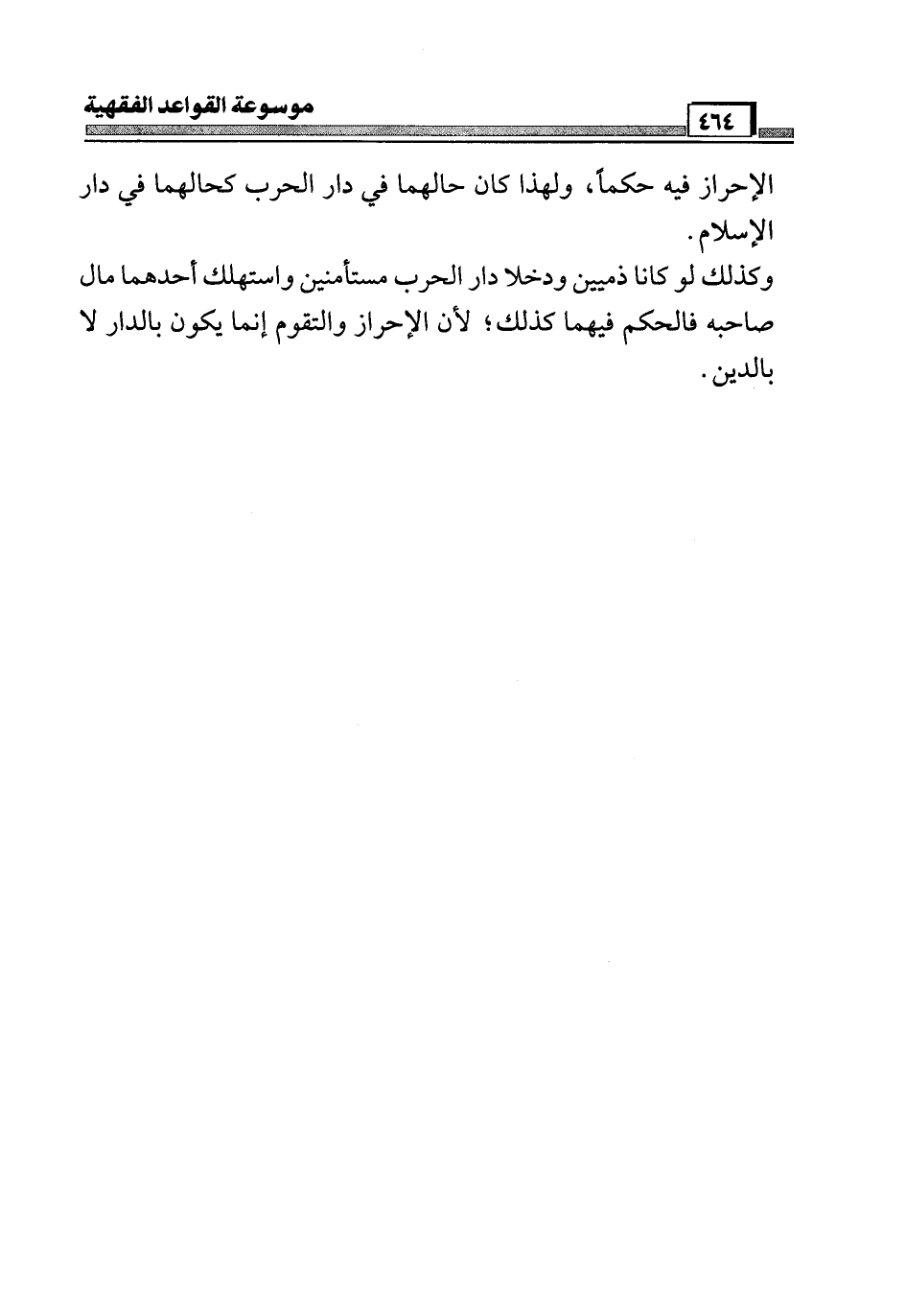 الإحراز فيه حكماً, ولهذا كان حالهما في دار الحرب كحالهما في دار الإِسلام.