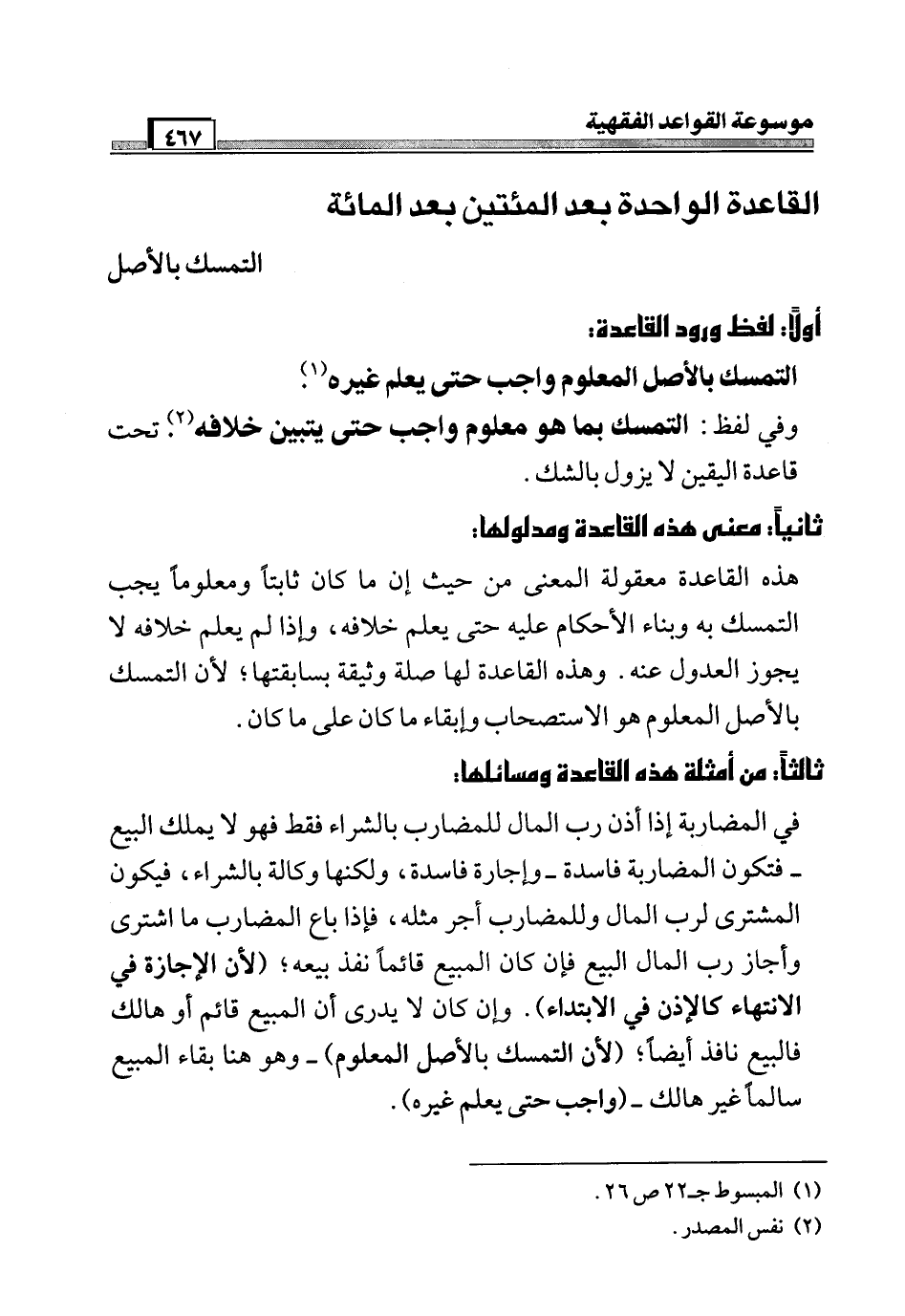 القاعدة الواحدة بعد المئتين بعد المائة [التمسك بالأصل]