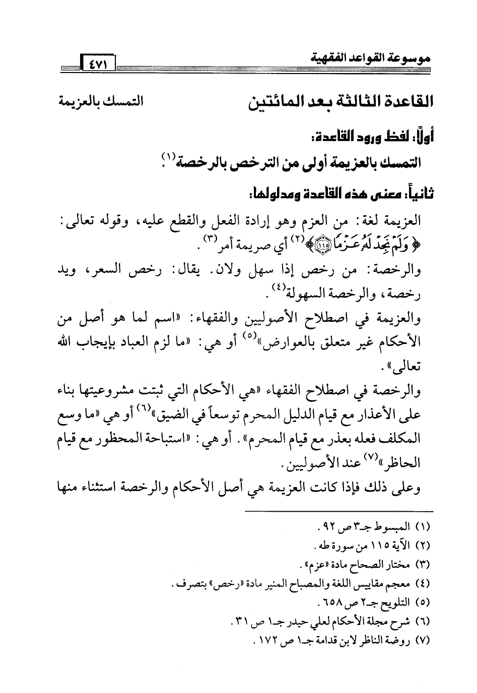 القاعدة الثالثة بعد المائتين [التمسك بالعزيمة]