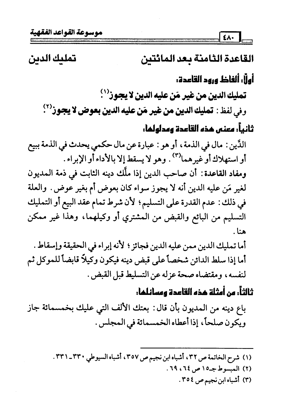 القاعدة الثامنة بعد المائتين [تمليك الدين]