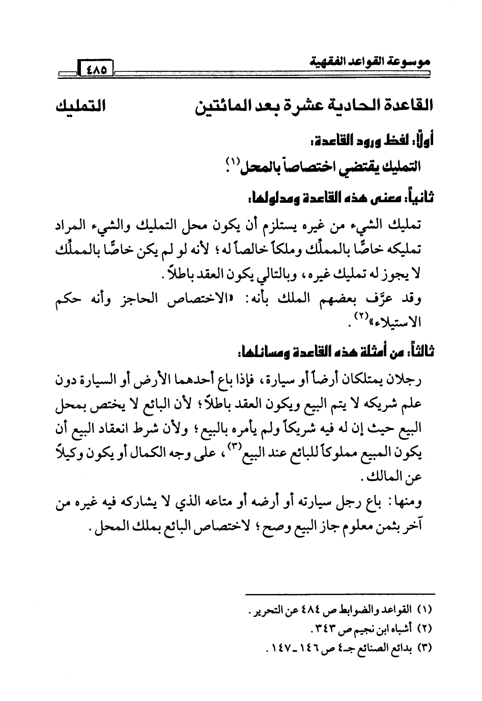 (¬1) القواعد والضوابط ص 484 عن التحرير.