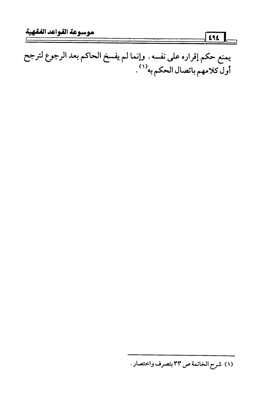 يمنع حكم إقراره على نفسه. وإنما لم يفسخ الحاكم بعد الرجوع لترجح أول كلامهم باتصال الحكم به (¬1).