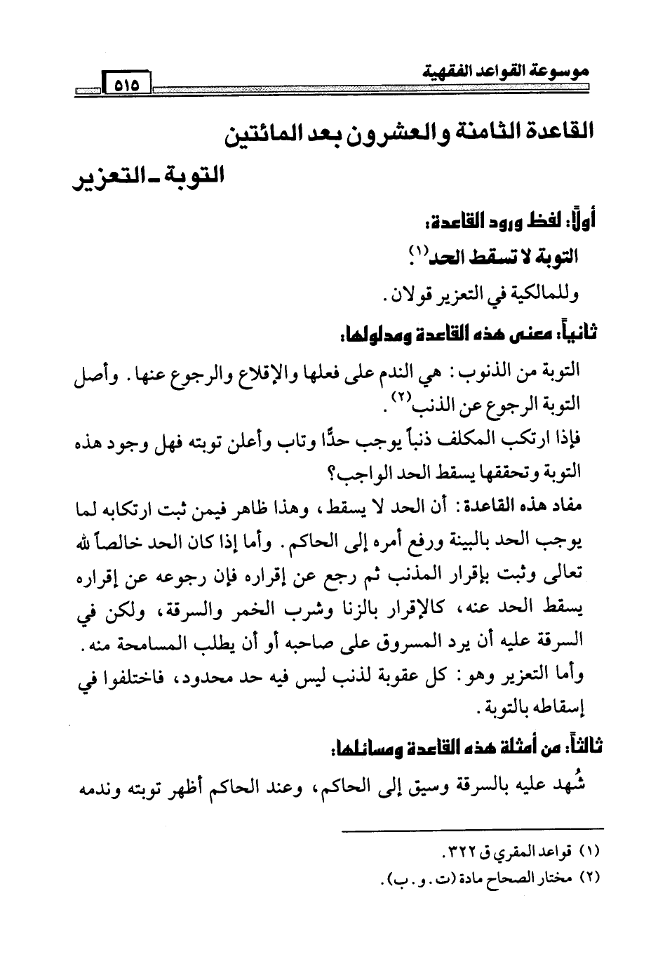 القاعدة الثامنة والعشرون بعد المائتين [التوبة - التعزير]