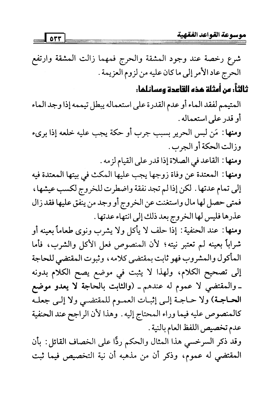 ثالثاً: من أمثلة هذه القاعدة ومسائلها:
