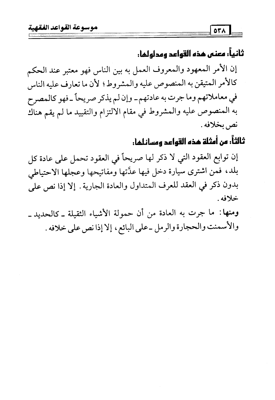 إن الأمر المعهود والمعروف العمل به بين الناس فهو معتبر عند الحكم كالأمر المتيقن به المنصوص عليه والمشروط؛ لأن ما تعارف عليه الناس في معاملاتهم وما جرت به عادتهم - وإن لم يذكر صريحاً - فهو كالمصرح به المنصوص عليه والمشروط في مقام الالتزام والتقييد ما لم يقم هناك نص بخلافه.