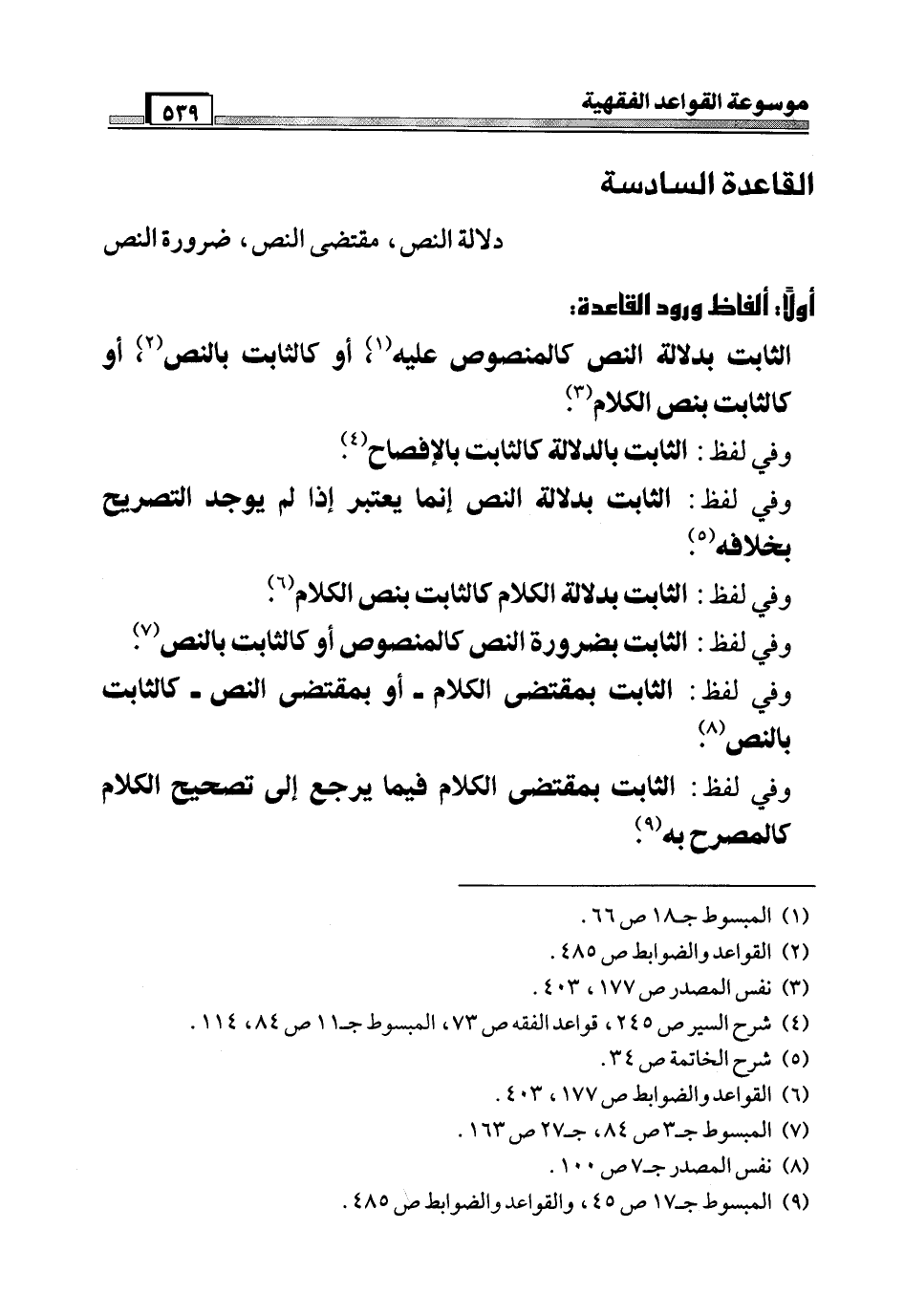 القاعدة السادسة [دلالة النص، مقتضى النص، ضرورة النص]