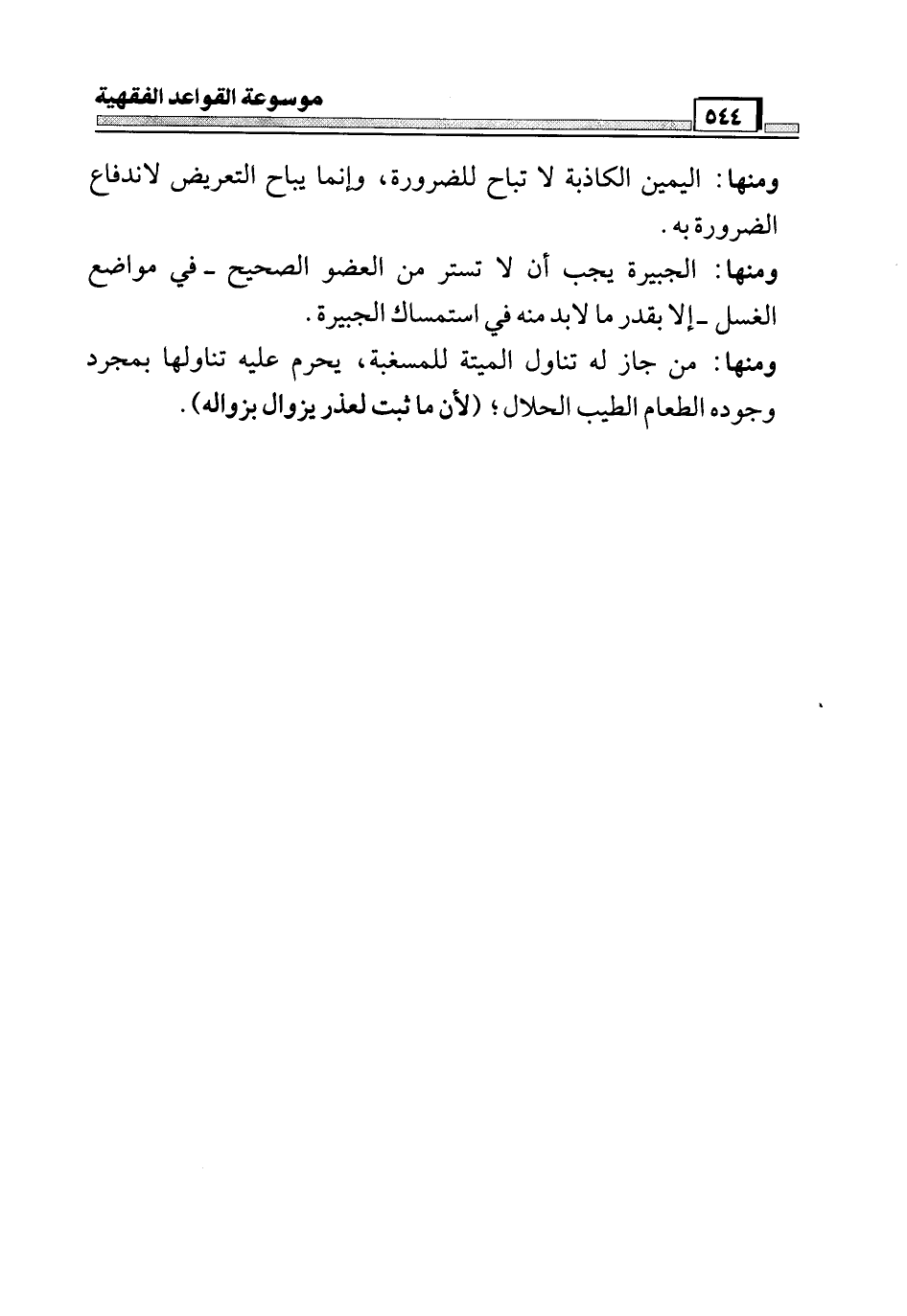 ومنها: اليمين الكاذبة لا تباح للضرورة، وإنما يباح التعريض لاندفاع الضرورة به.
