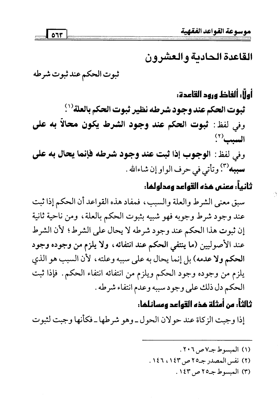 القاعدة الحادية والعشرون [ثبوت الحكم عند ثبوت شرطه]