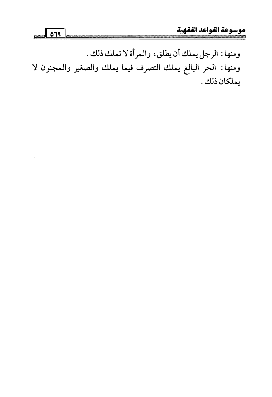 ومنها: الحر البالغ يملك التصرف فيما يملك والصغير والمجنون لا يملكان ذلك.