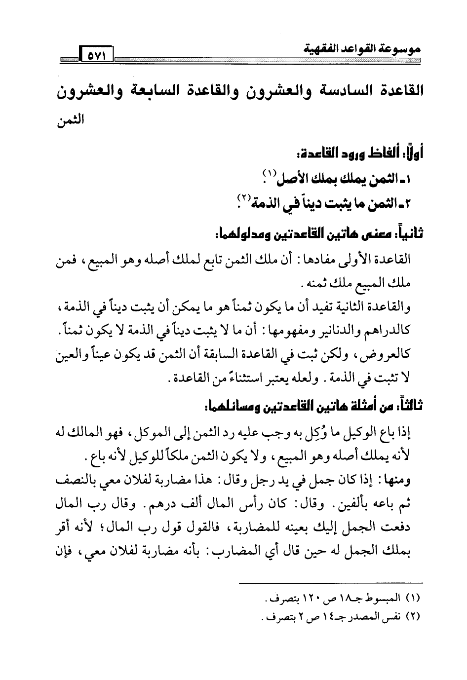 القاعدة السادسة والعشرون والقاعدة السابعة والعشرون [الثمن]