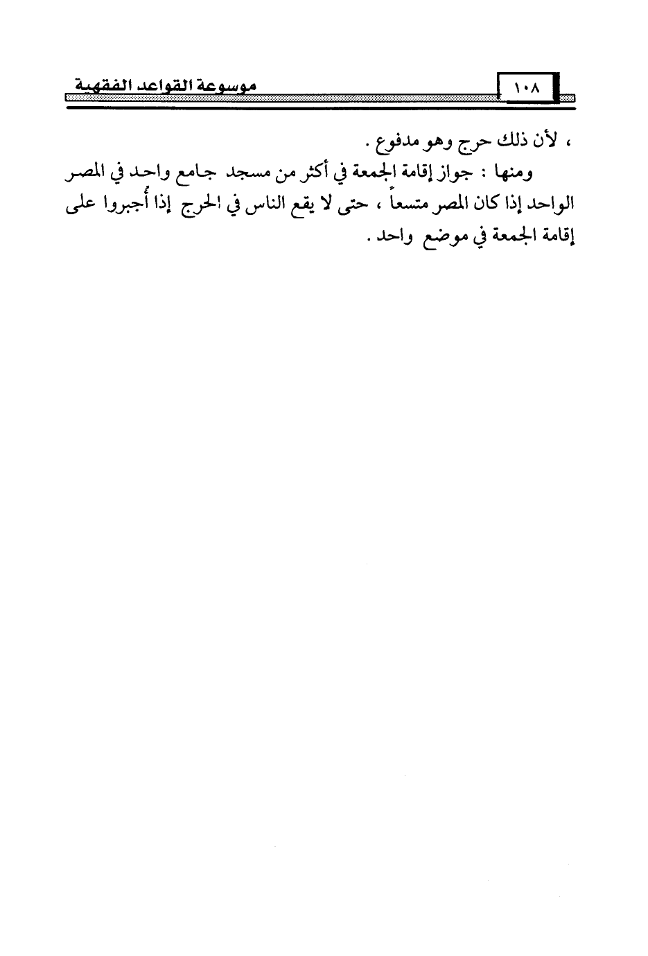 ومنها: جواز إقامة الجمعة في أكثر من مسجد جامع واحد في المصر الواحد إذا كان المصر متسعاً، حتى لا يقع الناس في الحرج إذا أُجبروا على إقامة الجمعة في موضع واحد.