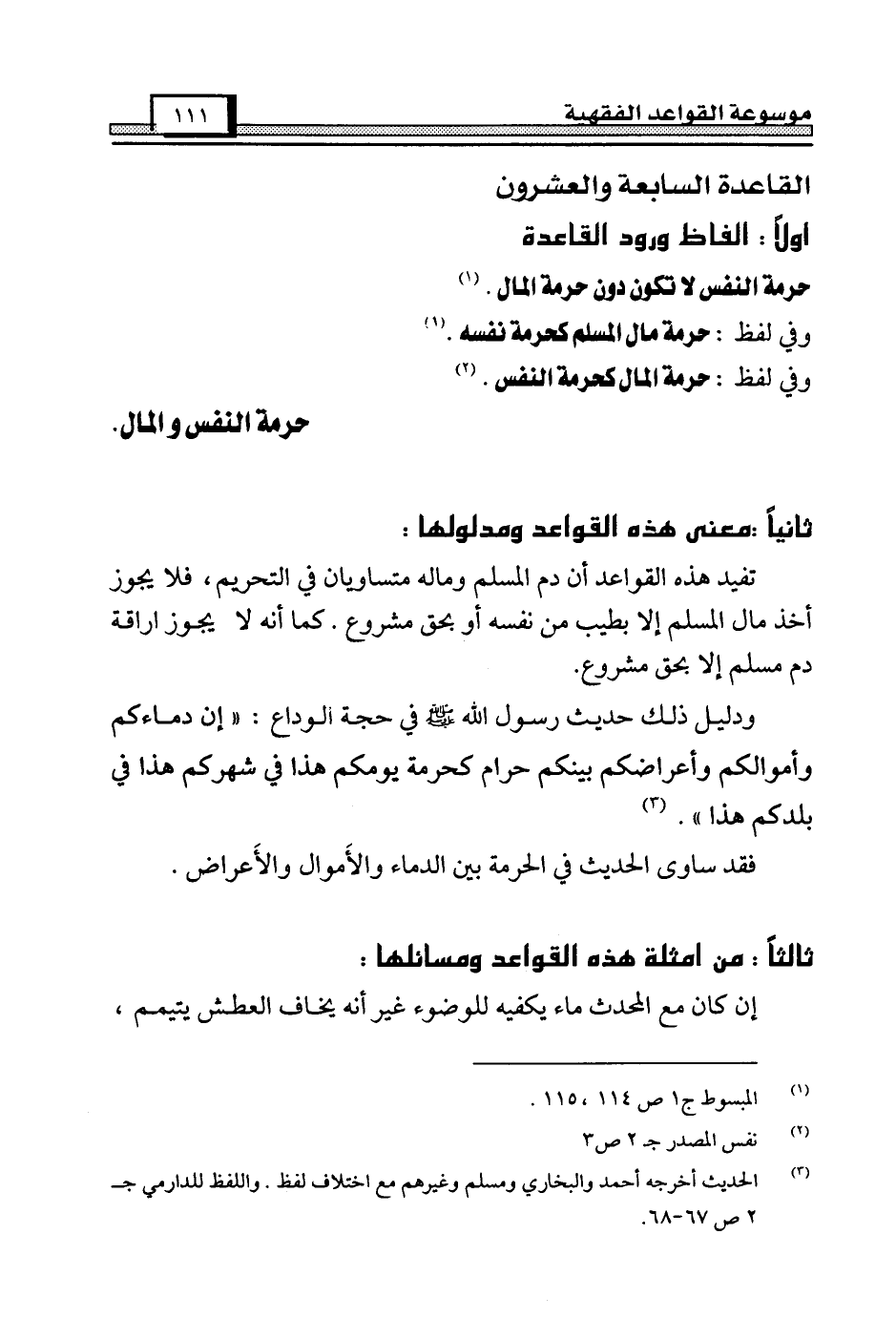 القاعدة السابعة والعشرون [حرمة النفس والمال].