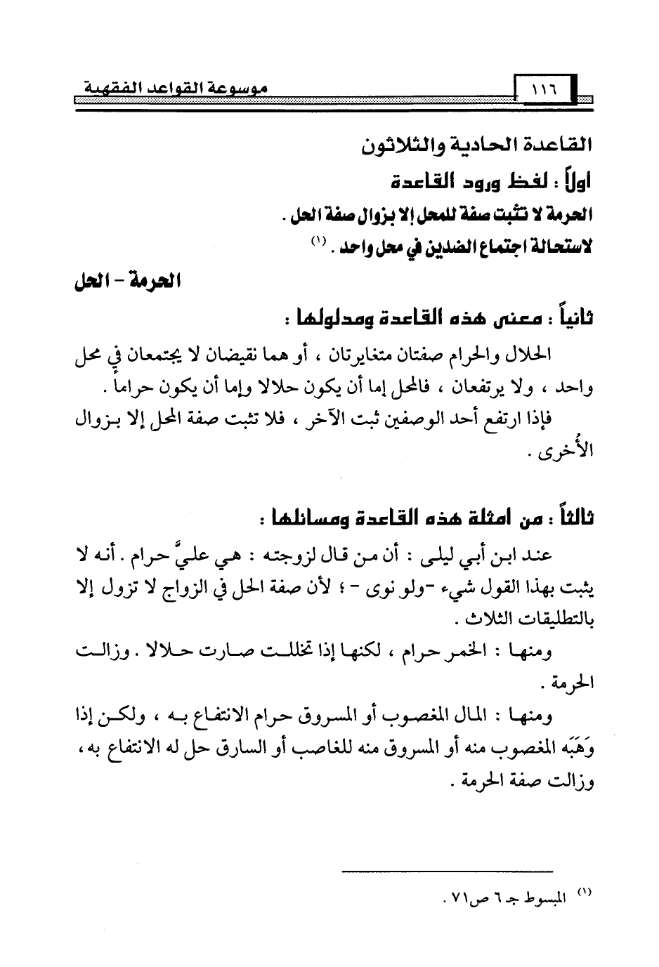 القاعدة الحادية والثلاثون [الحرمة - الحل]