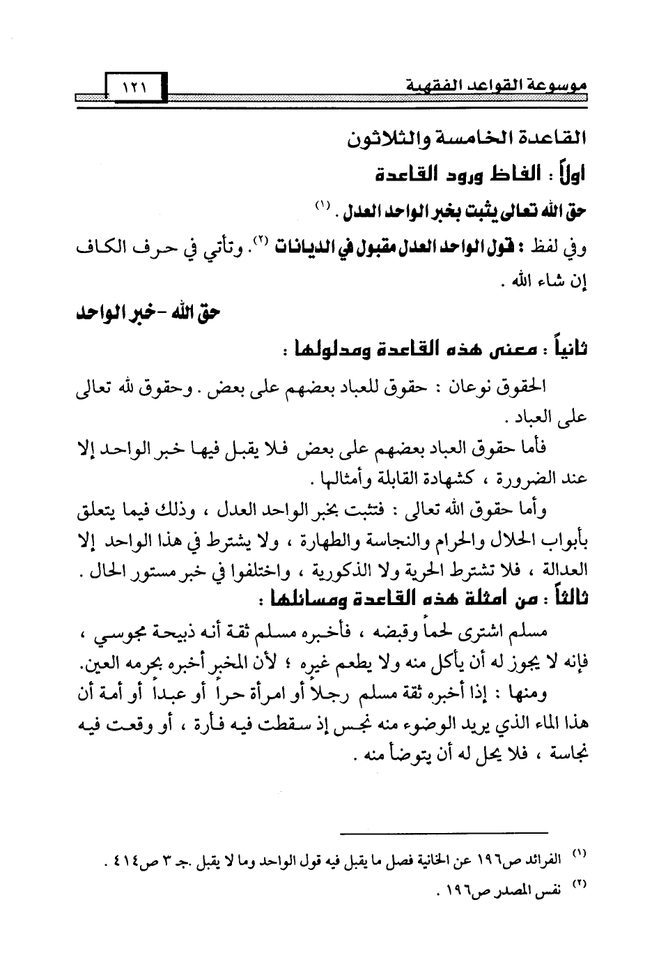 القاعدة الخامسة والثلاثون [حق الله - خبر الواحد]