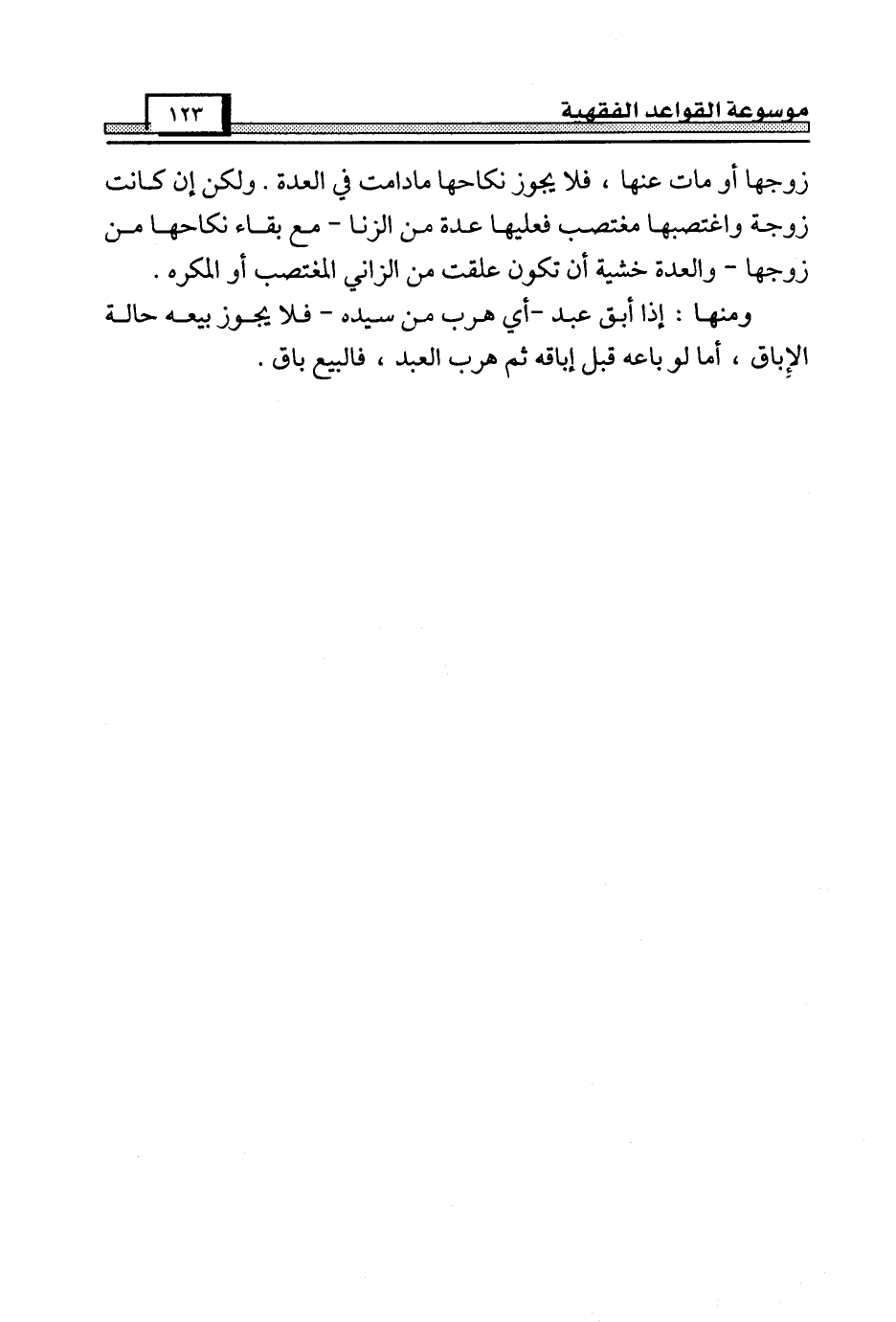 زوجها أو مات عنها، فلا يجوز نكاحها مادامت في العدة. ولكن إن كانت زوجة واغتصبها مغتصب فعليها عدة من الزنا - مع بقاء نكاحها من زوجها - والعدة خشية أن تكون علقت من الزاني المغتصب أو المكره.
