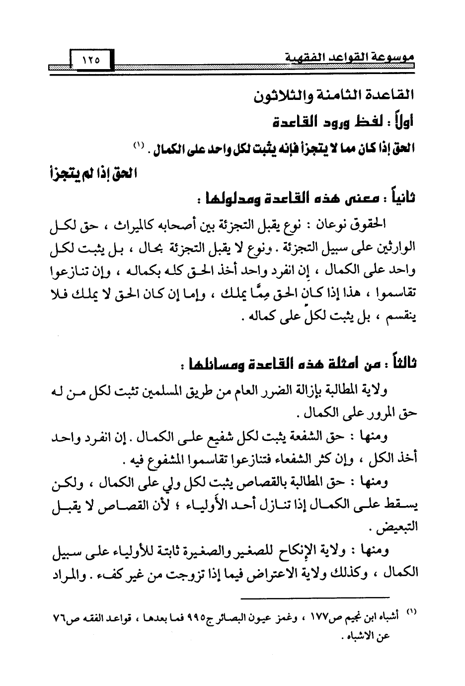 (¬1) أشباه ابن نجيم ص 177، وغمز عيون البصائر ج 995 فما بعدها، قواعد الفقه ص 76 عن الأشباه.