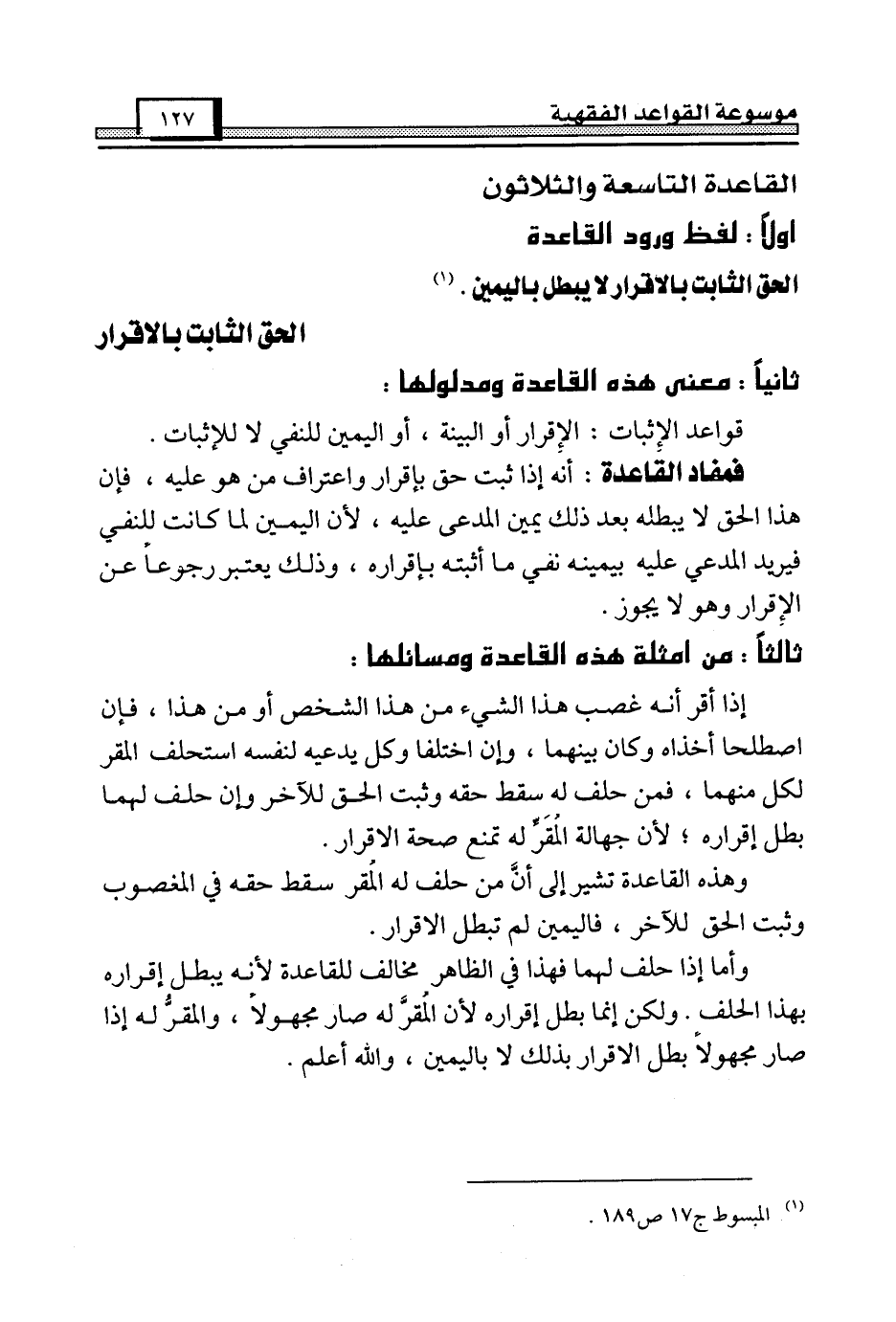 القاعدة التاسعة والثلاثون [الحق الثابت بالإقرار]