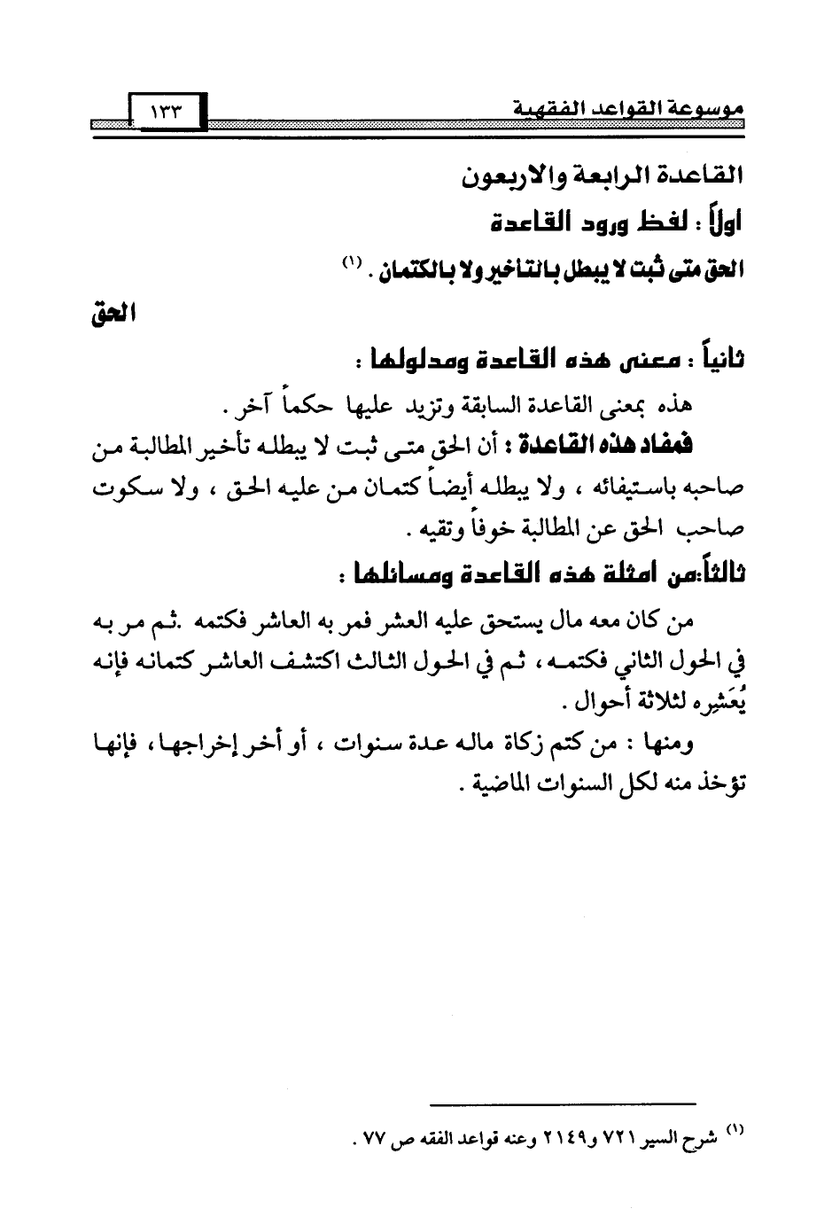 (¬1) شرح السير 721 و2149 وعنه قواعد الفقه ص 77.