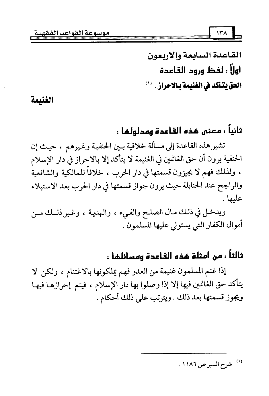 الحق يتأكد في الغنيمة بالاحراز. (¬1)