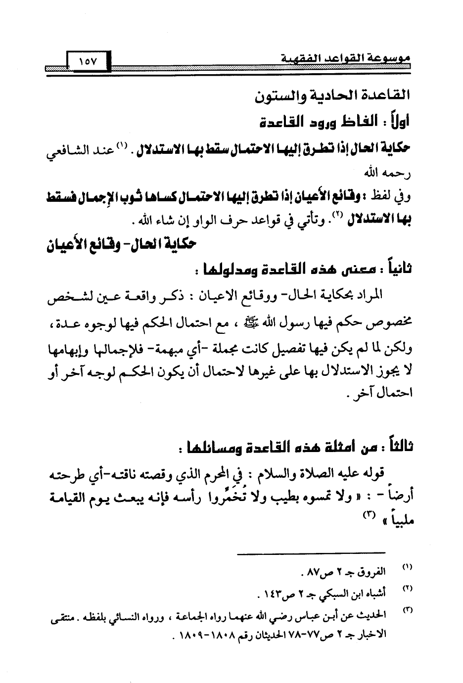 وفي لفظ: وقائع الأعيان إذا تطرق إليها الاحتمال كساها ثوب الإِجمال فسقط بها الاستدلال (¬2). وتأتي في قواعد حرف الواو إن شاء الله.