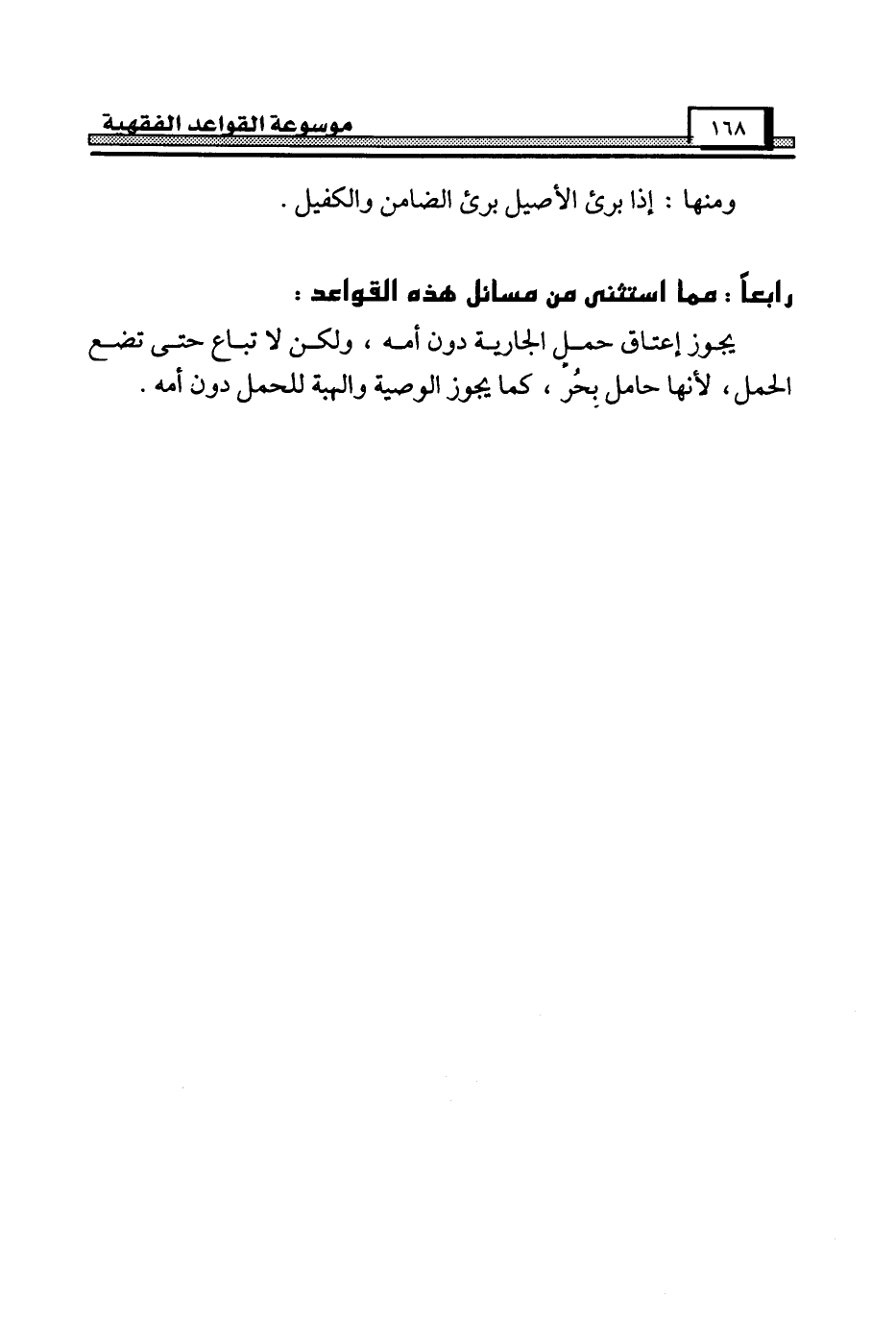 رابعاً: مما استثنى من مسائل هذه القواعد: