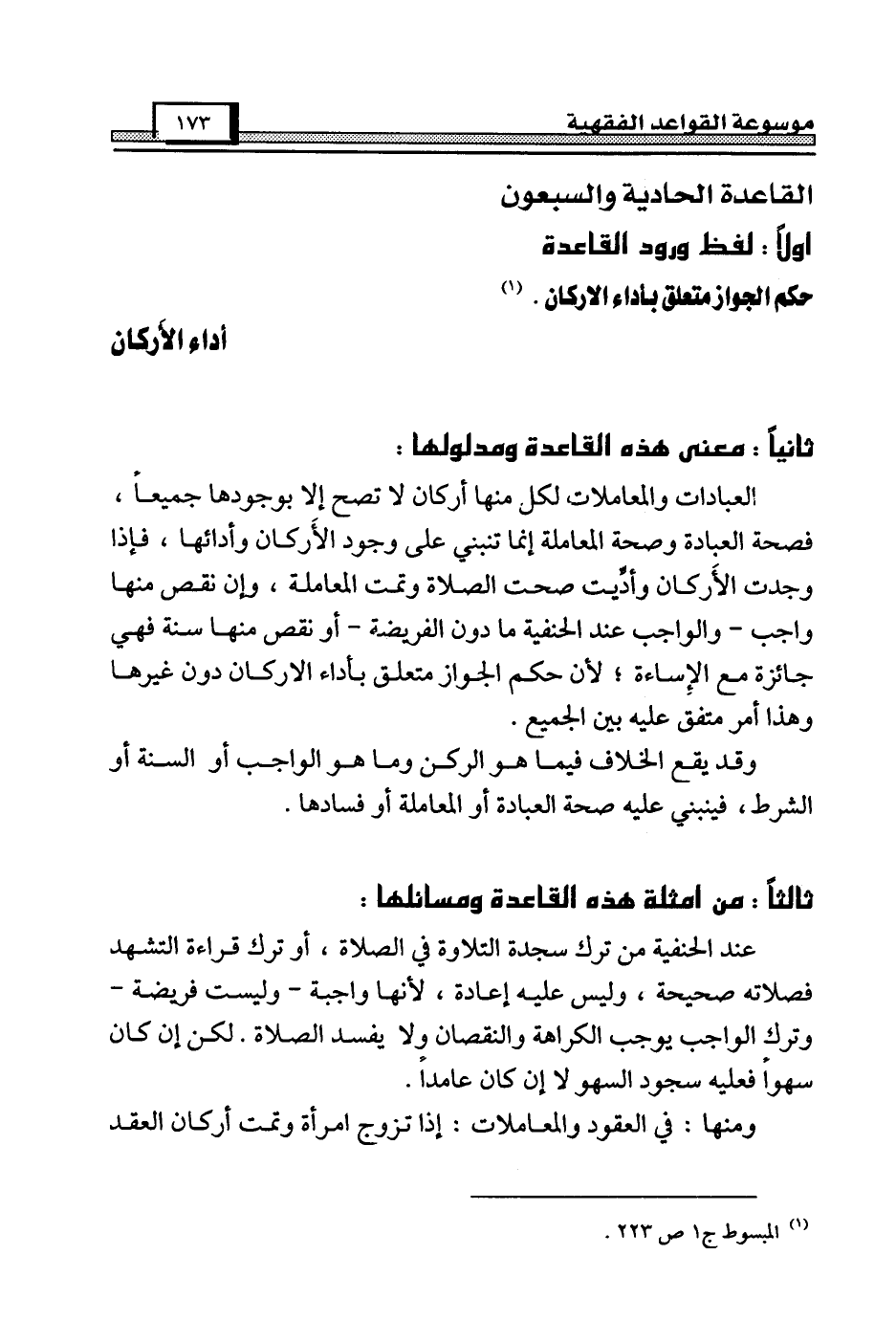القاعدة الحادية والسبعون [أداء الأَركان]