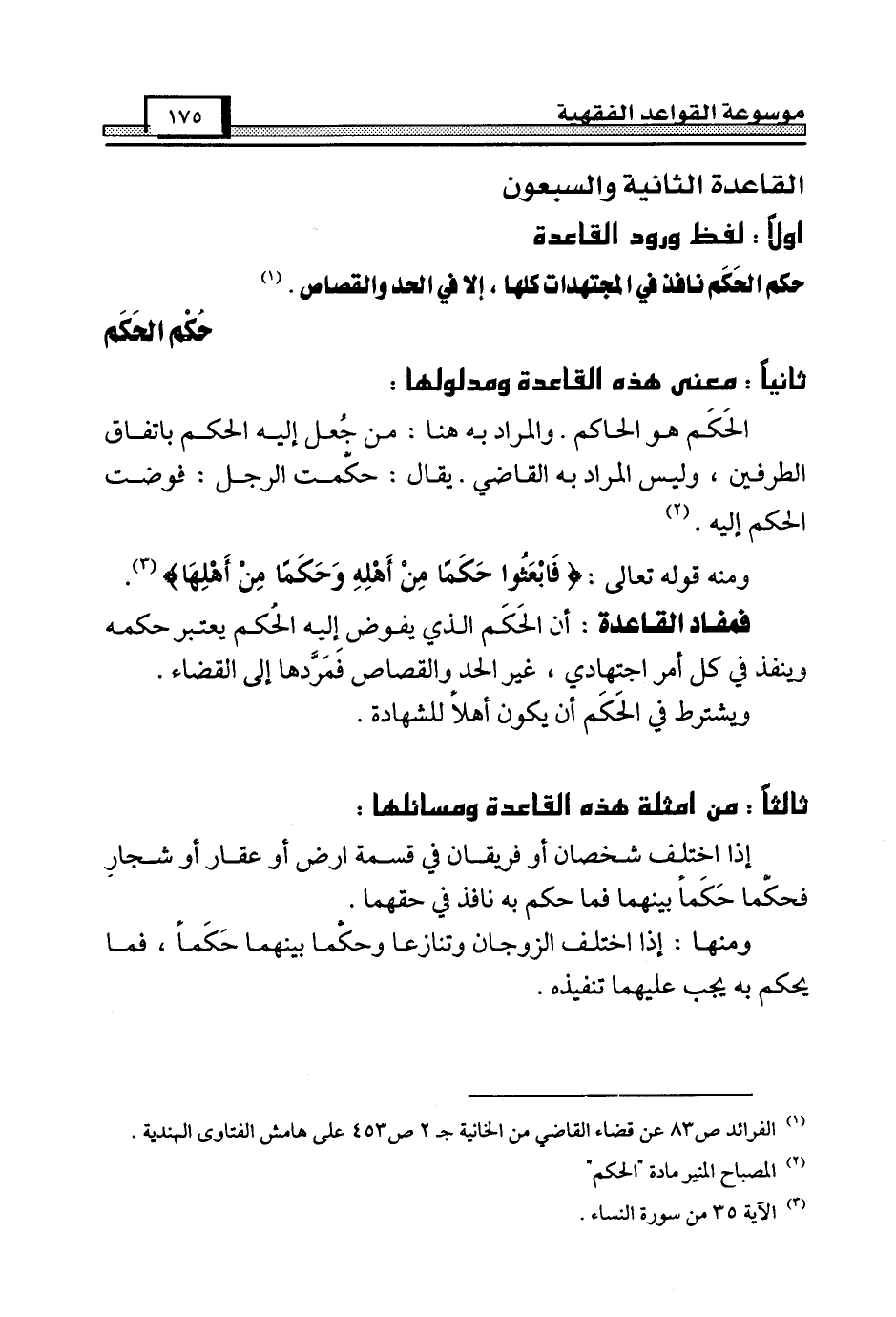 (¬1) الفرائد ص 83 عن قضاء القاضي من الخانية جـ 2 ص 453 على هامش الفتاوى الهندية.