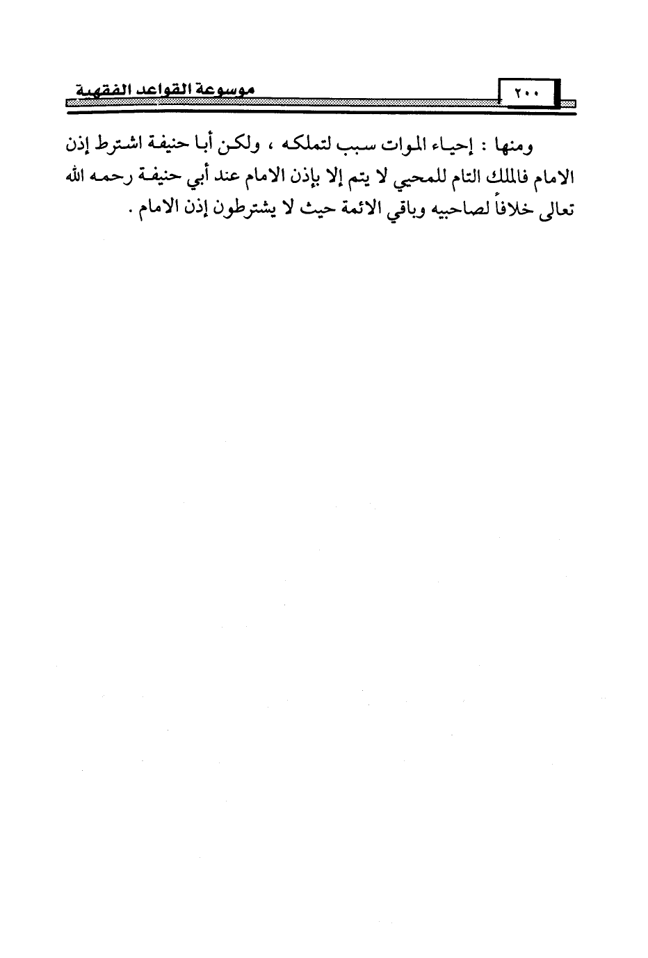 ومنها: إحياء الموات سبب لتملكه، ولكن أبا حنيفة اشترط إذن الإمام فالملك التام للمحيي لا يتم إلا بإذن الإمام عند أبي حنيفة رحمه الله تعالى خلافاً لصاحبيه وباقي الأئمة حيث لا يشترطون إذن الإمام.