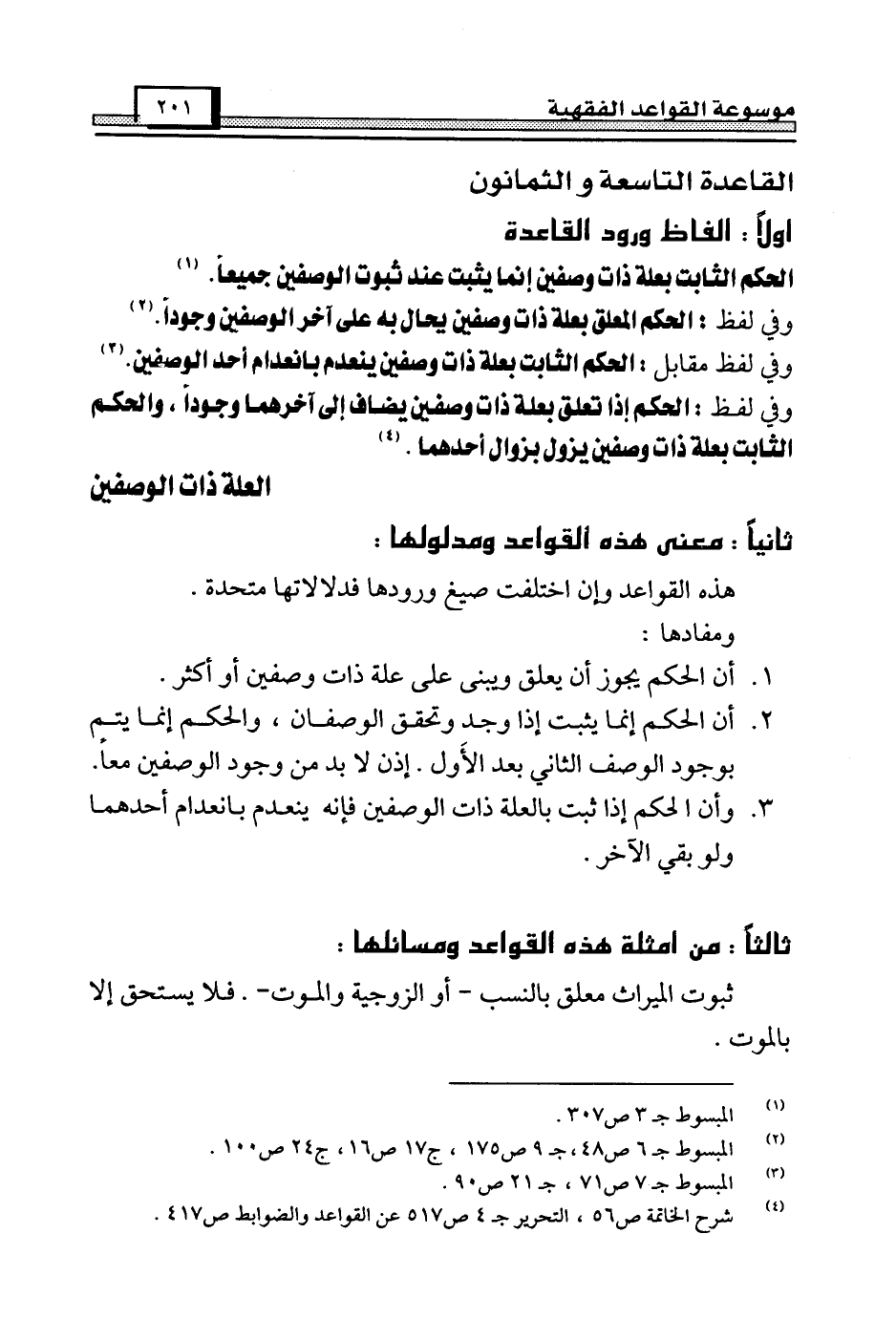القاعدة التاسعة والثمانون [العلة ذات الوصفين]