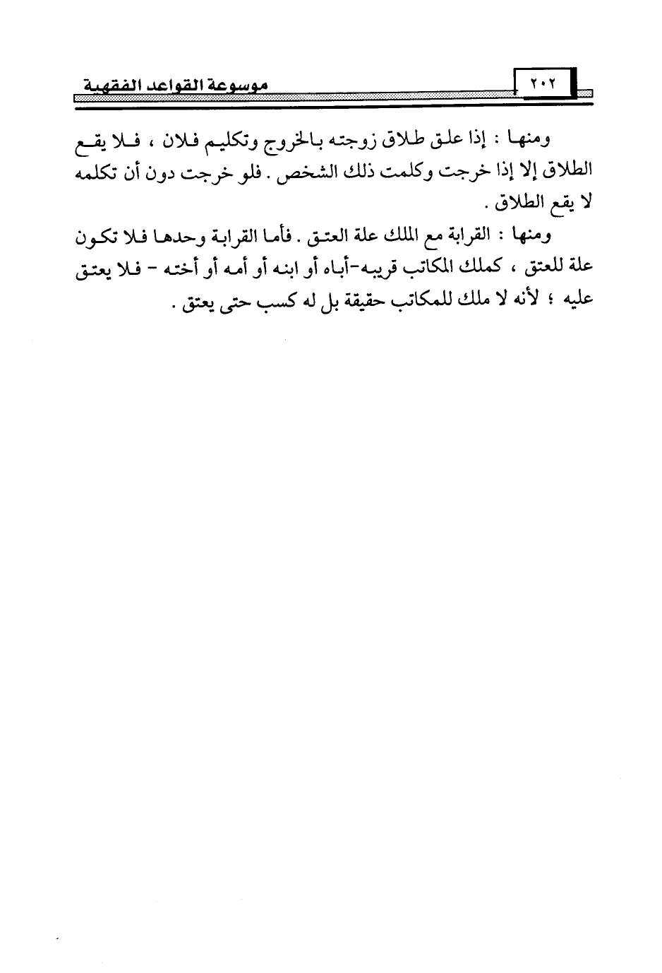 ومنها: إذا علق طلاق زوجته بالخروج وتكليم فلان، فلا يقع الطلاق إلا إذا خرجت وكلمت ذلك الشخص. فلو خرجت دون أن تكلمه لا يقع الطلاق.