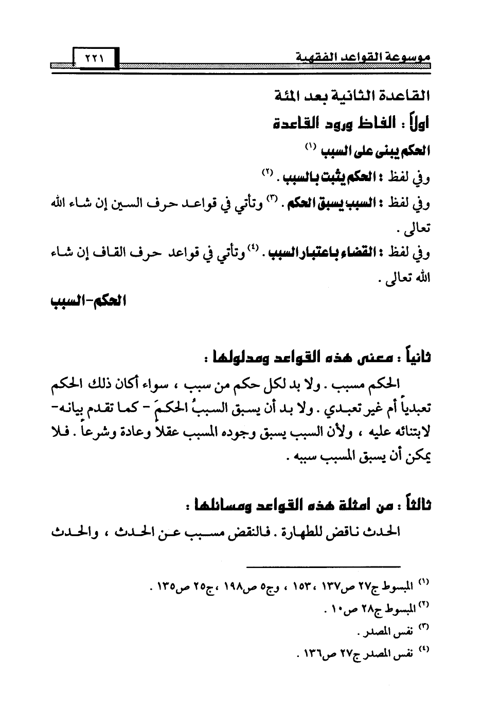 وفي لفظ: السبب يسبق الحكم. (¬3) وتأتي في قواعد حرف السين إن شاء الله تعالى.