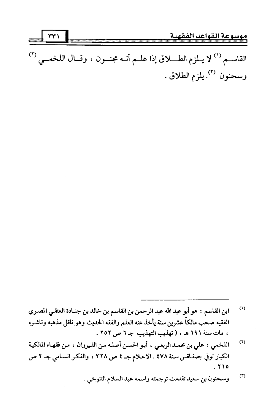 (¬1) ابن القاسم: هو أبو عبد الله عبد الرحمن بن القاسم بن خالد بن جنادة العتقي المصري الفقيه صحب مالكاً عشرين سنة يأخذ عنه العلم والفقه الحديث وهو ناقل مذهبه وناشره، مات سنة 191 هـ، (تهذيب التهذيب جـ 6 ص252.
