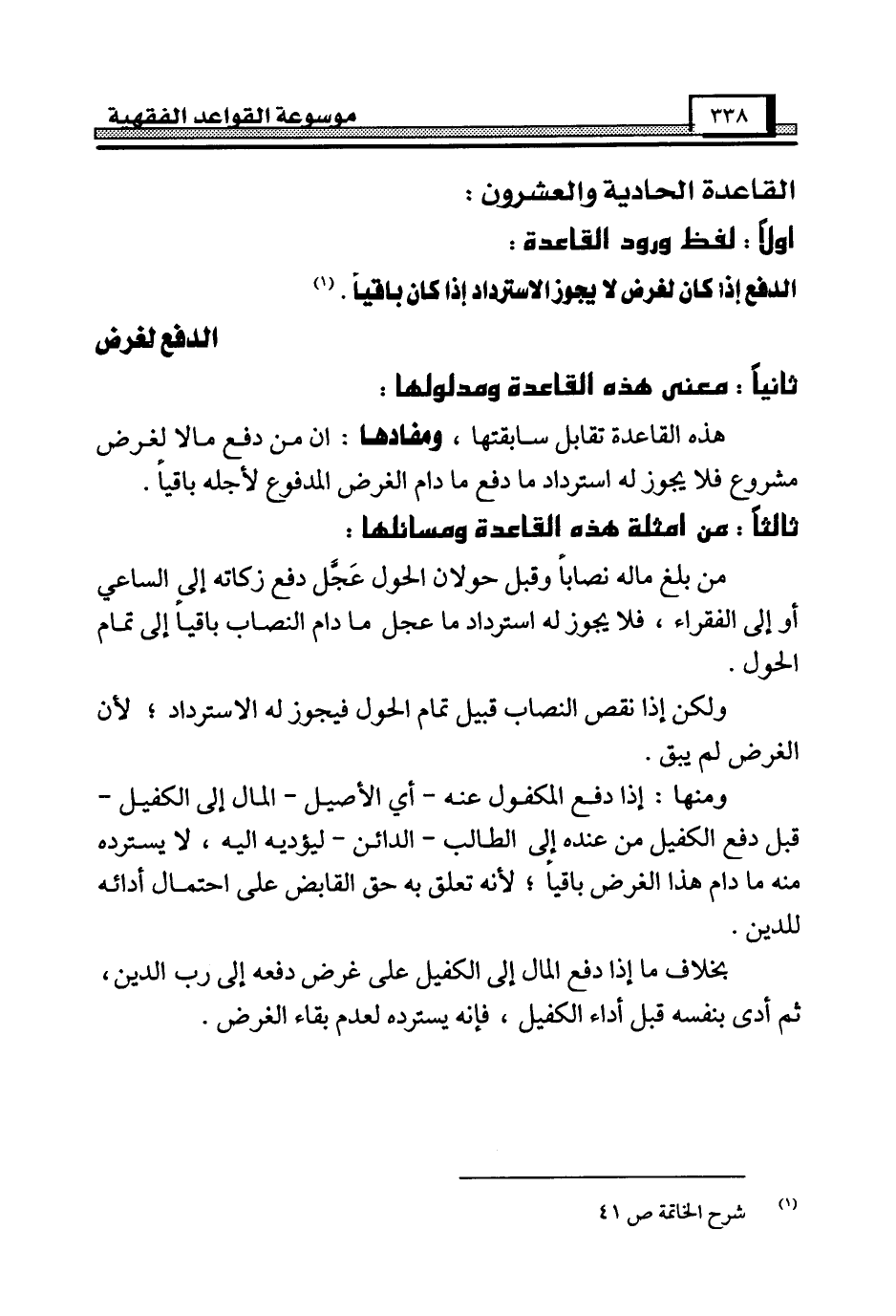 القاعدة الحادية والعشرون: [الدفع لغرض]