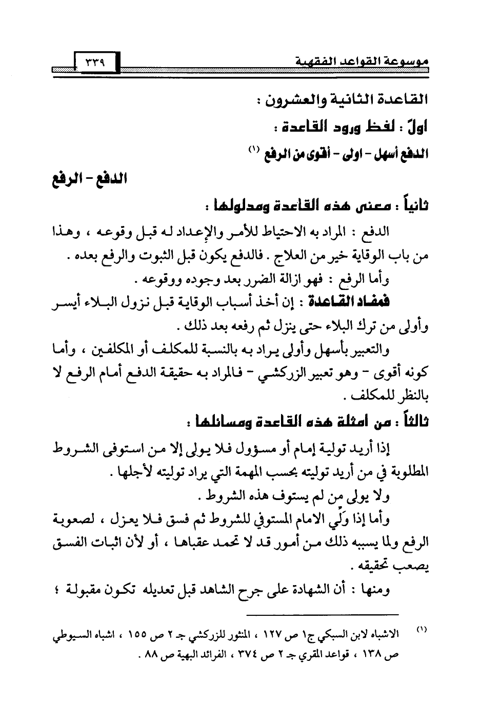 (¬1) الأشباه لابن السبكي ج 1 ص 127، المنثور للزركشي جـ 2 ص 155، أشباه السيوطي ص 138، قواعد المقري جـ 2 ص 374، الفرائد البهية ص 88.