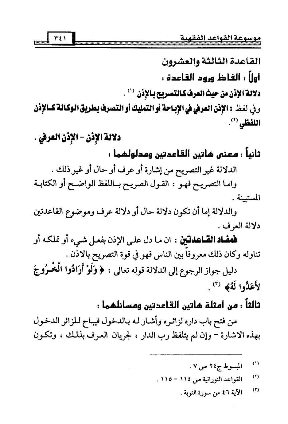 القاعدة الثالثة والعشرون [دلالة الإِذن - الإِذن العرفي].