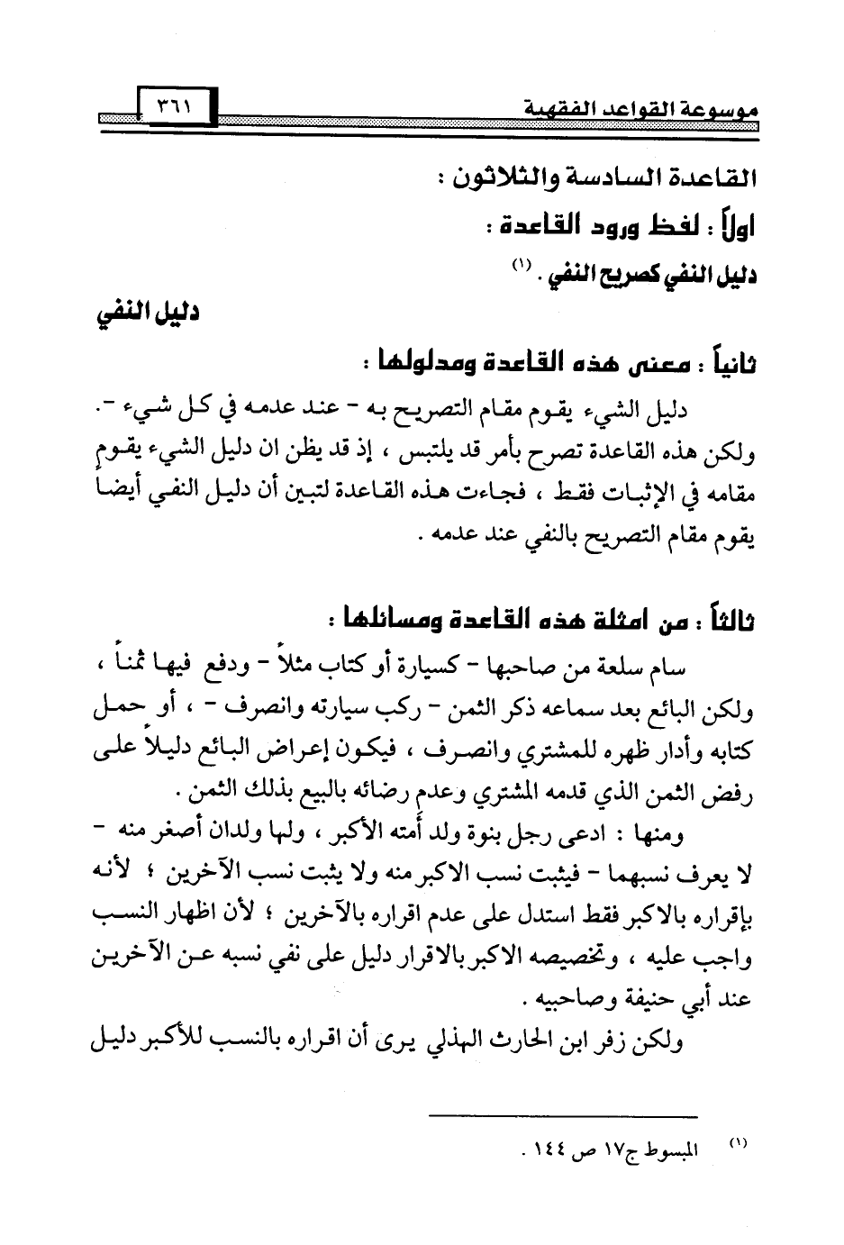 القاعدة السادسة والثلاثون: [دليل النفي]