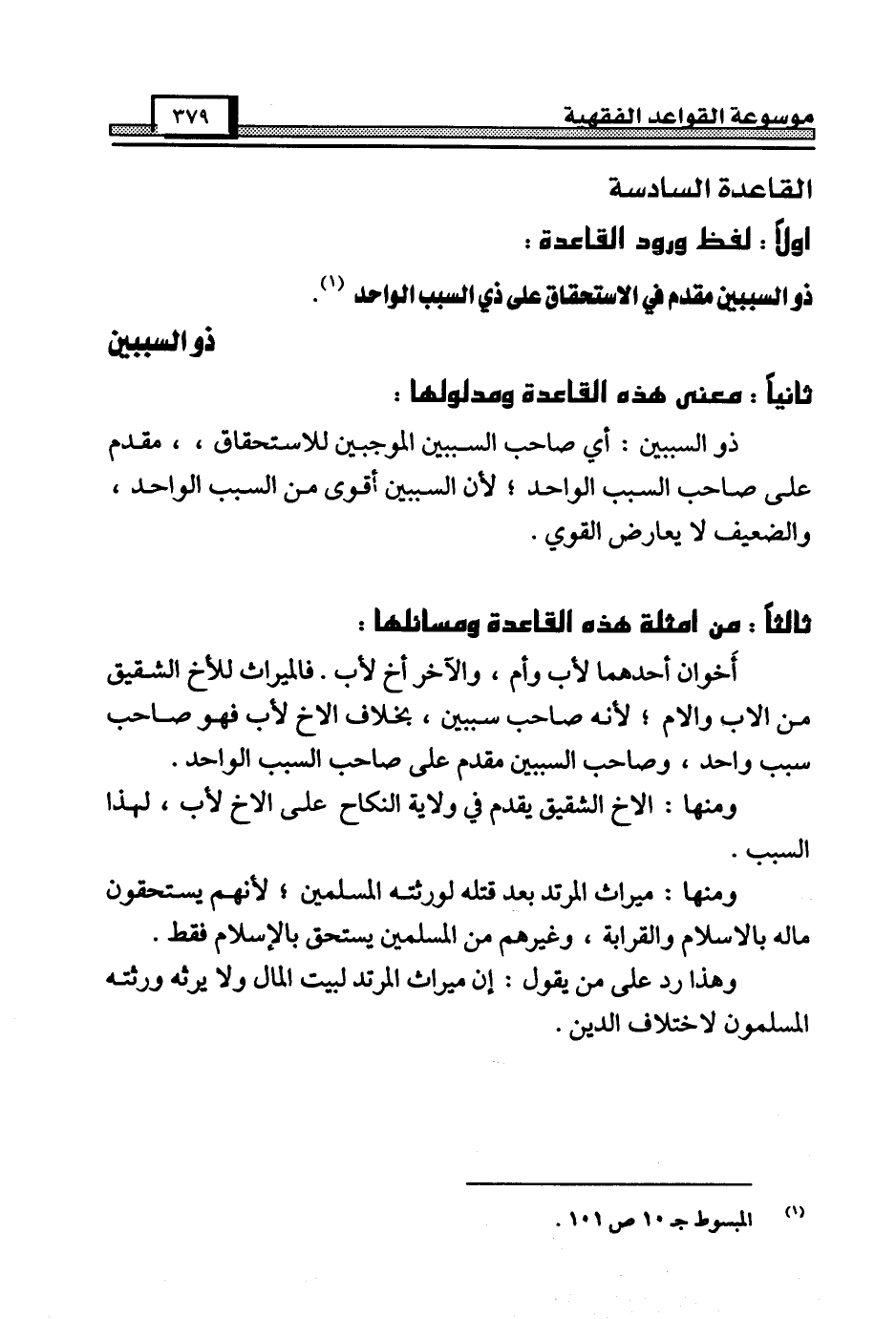 القاعدة السادسة [ذو السببين]