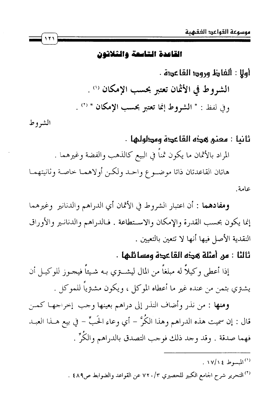 (¬2) التحرير شرح الجامع الكبير للحصيري 3/ 720 عن القواعد والضوابط ص 489.