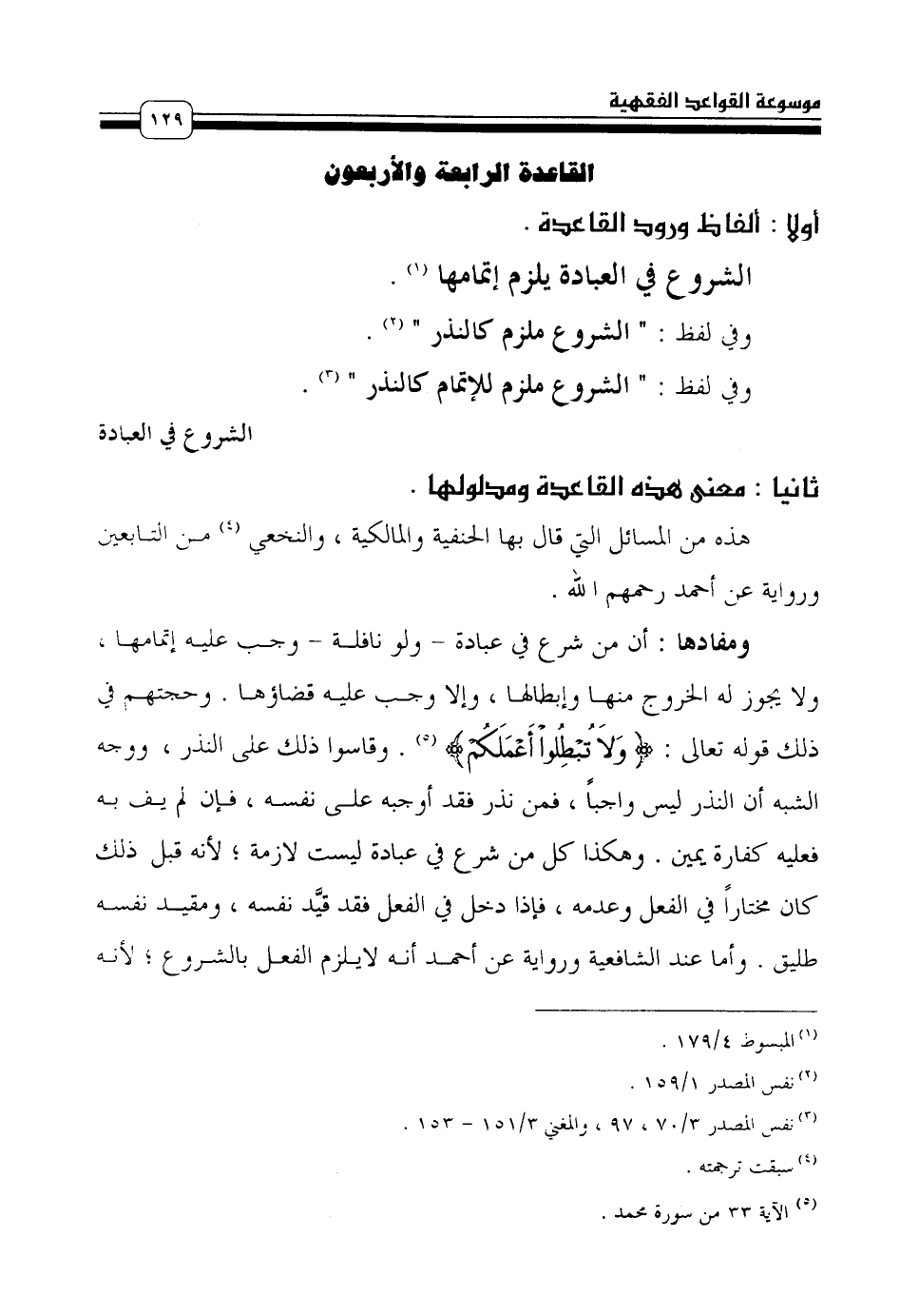 القاعدة الرابعة والأربعون [الشروع في العبادة]