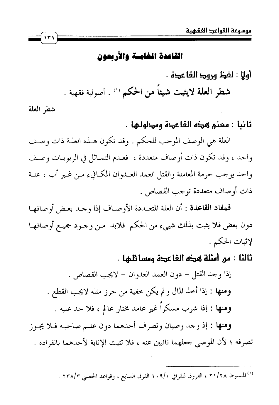 (¬1) المبسوط 28/ 21، الفروق للقرافي 1/ 109 الفرق السابع, وقواعد الحصني 3/ 238.