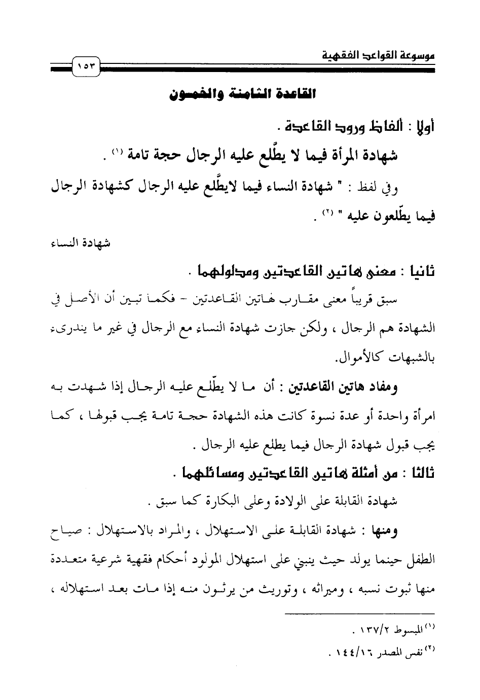 القاعدة الثامنة والخمسون [شهادة النساء]