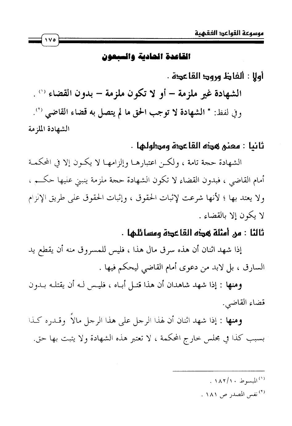 القاعدة الحادية والسبعون [الشهادة الملزمة]