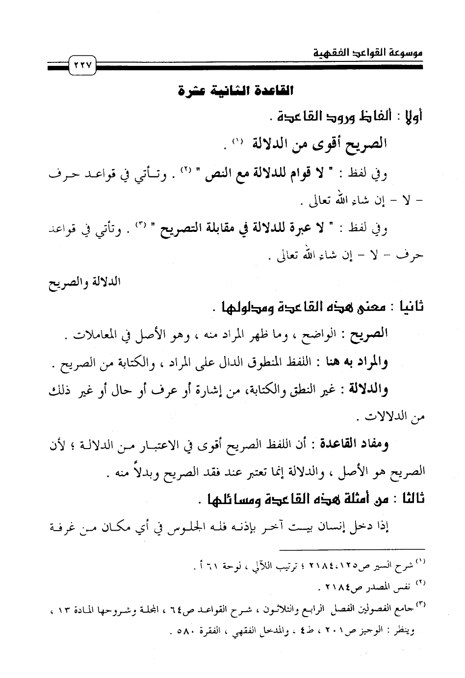 القاعدة الثانية عشرة [الدلالة والصريح]