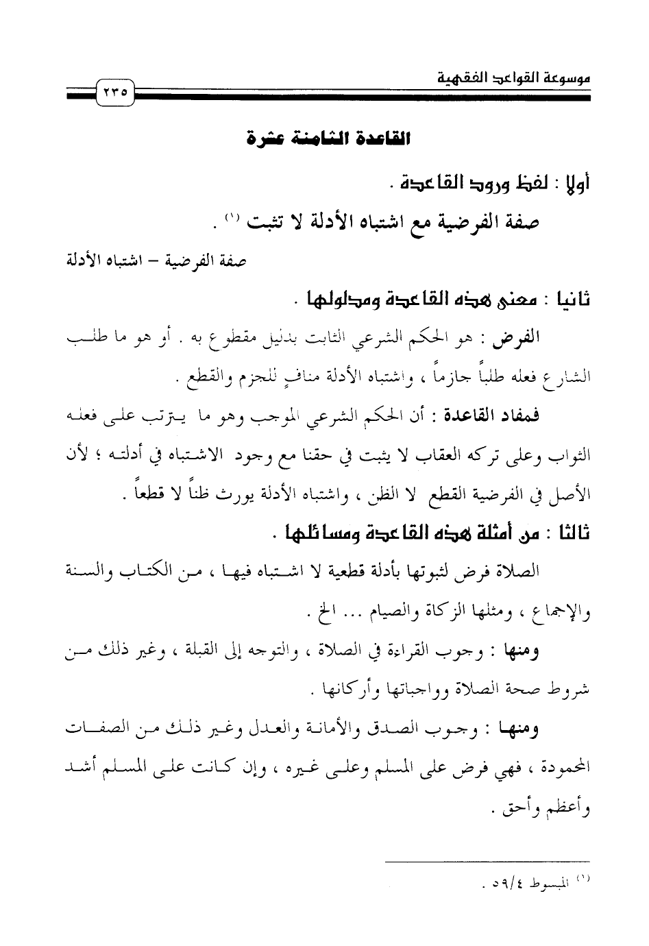 القاعدة الثامنة عشرة [صفة الفرضية - اشتباه الأدلة]