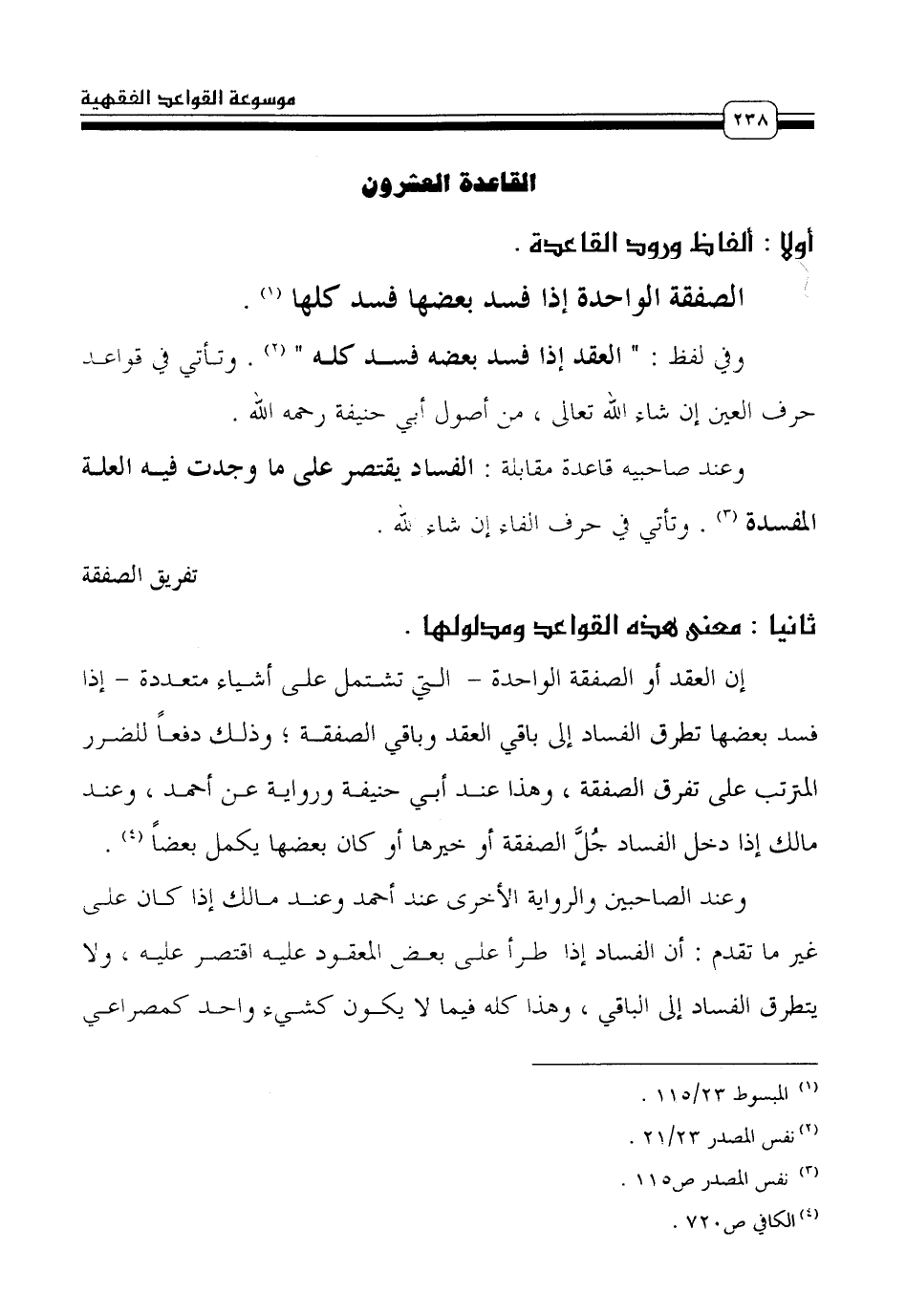 وعند صاحبيه قاعدة مقابلة: الفساد يقتصر على ما وجدت فيه العلة المفسدة (¬3). وتأتي في حرف الفاء إن شاء الله.