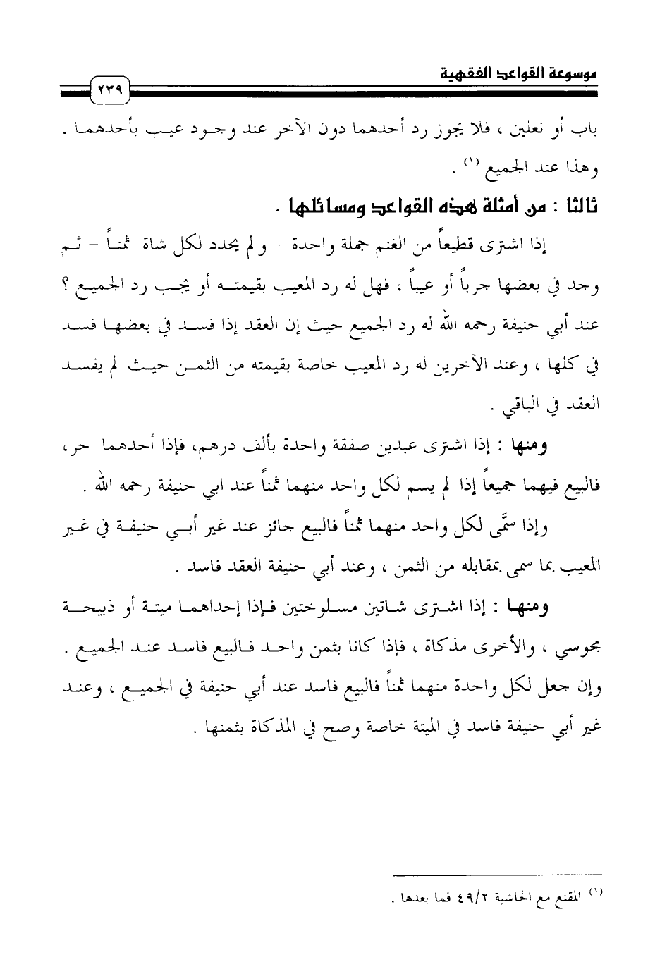 ثالثاً: من أمثلة هذه القواعد ومسائلها.